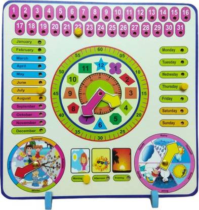Dgcrayons Wooden 7 In 1 Pinewood Calendar Learning Toy With Date Days Months Seasons And Clock